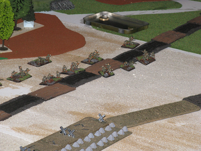 Die Deutschen stellen zuerst auf (hier die südliche Stellung mit den beiden Zügen der 225. vor den Minenfelder.