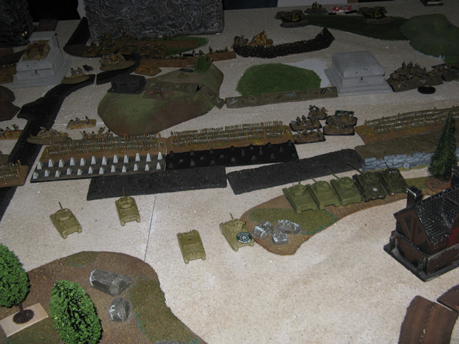 Rechts kurz vor den deutschen Stellungen die IS2 von Frank, dahinter Pionierinfanterie und diverse Shermans. In der Mitte weitere Shermans von Joachim und Olaf.
