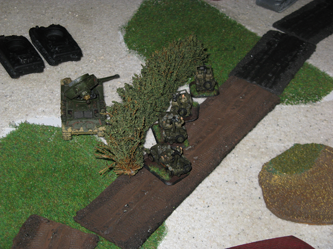Der Vormarsch der IS2 wurde kurz gestoppt durch den massiven Beschuss der Rohrwaffen im südlichen Bereich, indem zwei von ihnen vernichtet wurden. Kurz darauf gelang ein IS2 über das Minenfeld und verscheuchte dort im Nahkampf meinen zweiten Zug, trotz angeschlossenem 1st Command! Die Shermans zerstörten die zweite Base beim ersten Zug.