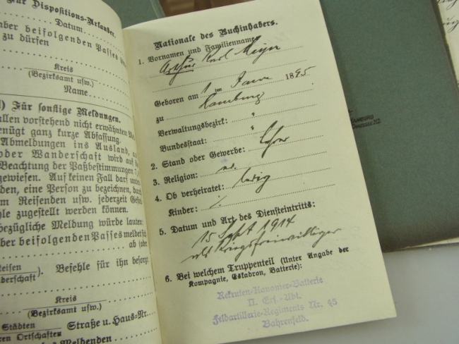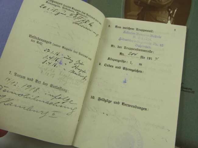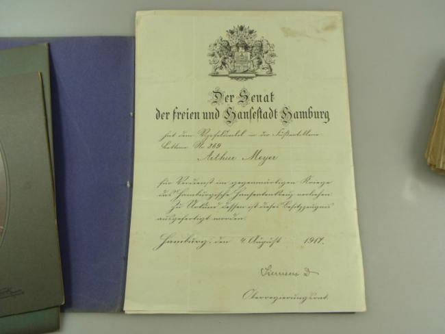 Katalogbeschreibung: "Nachlass Urkunden Hamburg Hanseatenkreuz Militärpaß Feldartillerie K301016E0"
