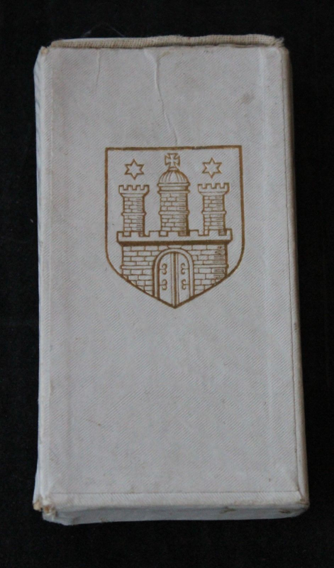 Katalogbeschreibung: "Hamburger Hanseatenkreuz in Verleihungsschachtel / Etui"