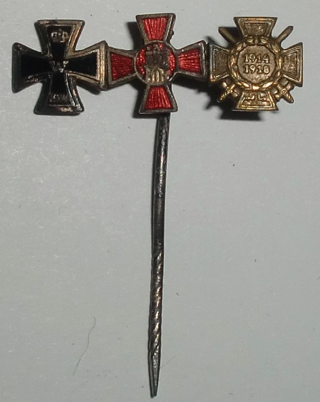 Katalogbeschreibung: "3er-Miniaturnadel-Eisernes-Kreuz-1914-EK-2-Hanseatenkreuz-HAMBURG-Frontkaempfer"