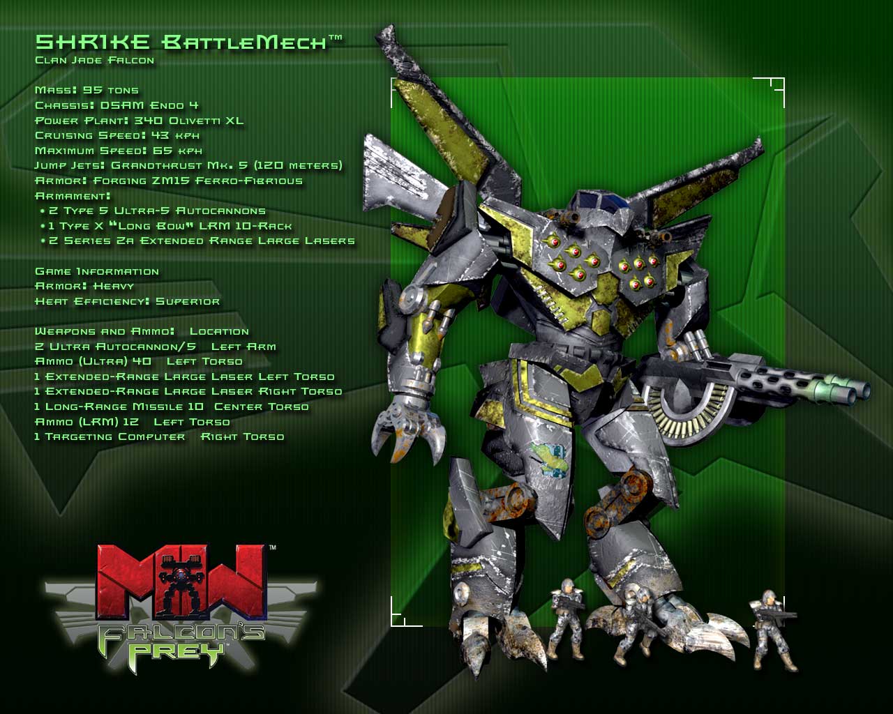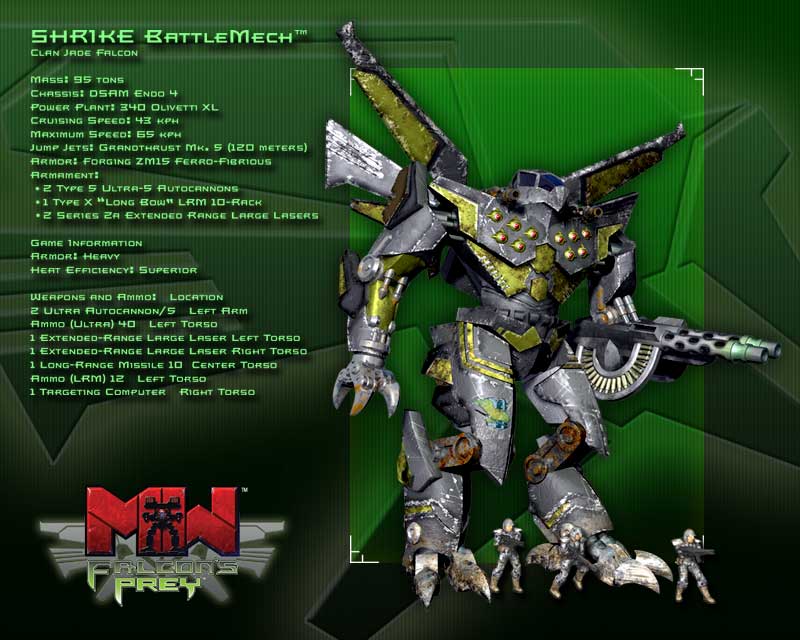 Jade Falcon, einer der populärsten Clans aus dem Classic Battletech-Universum, tritt erstmals in der Mechwarrior-Erweiterung Falcon's Prey in Erscheinung.