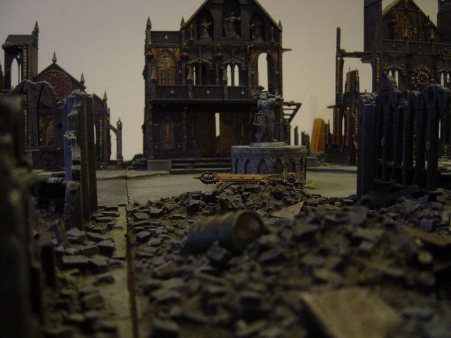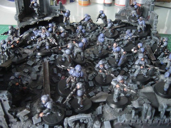 Seit ich mit dem Sammeln und Bemalen meiner IG angefangen habe, war mir klar, dass ich sie am liebsten durch die rauchenden Ruinen einer Stadt des 41.Milleniums vorrücken sehen wollte.