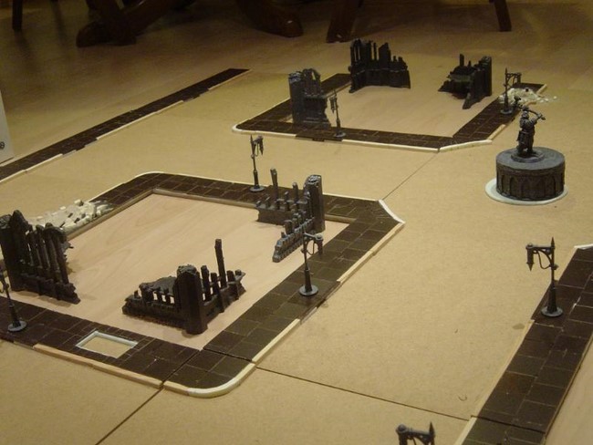 Die einzelnen Ruinen und Gebäude sind auf 30x30cm großen Segmenten montiert.
