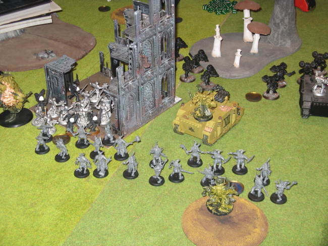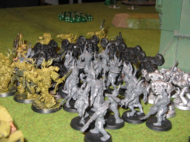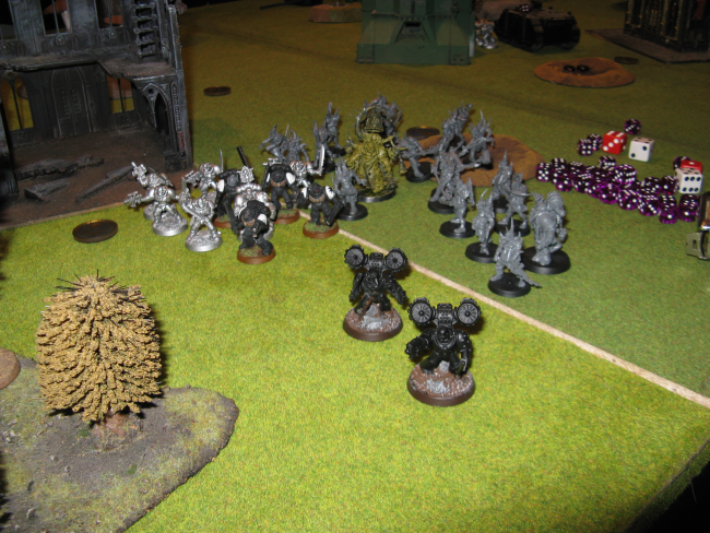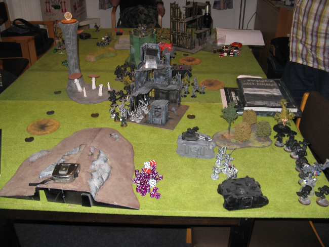 Von meinen Black Templar stand nur noch drei Einheiten, bei den Death Guard deren zwei. Die Raven Guard waren komplett ausgeschaltet und die Tau´s waren fast komplett. Hätte es noch eine Runde gegeben, hätten wir voraussichtlich verloren.