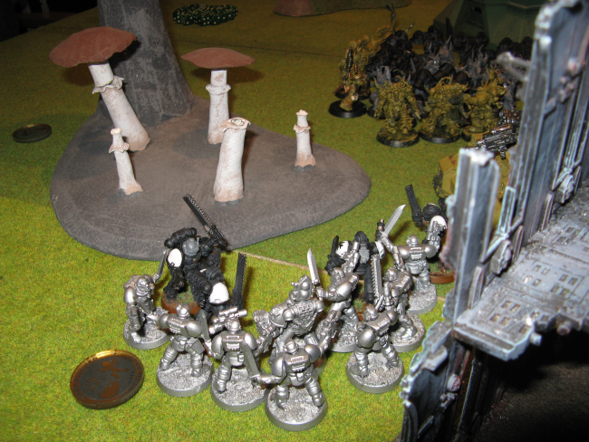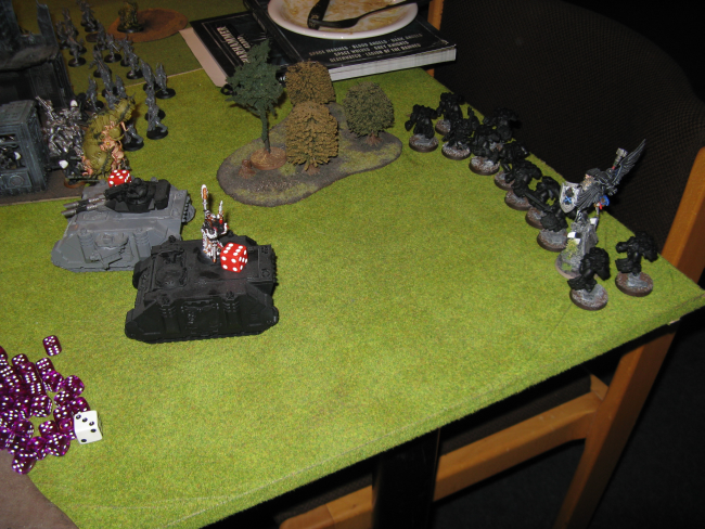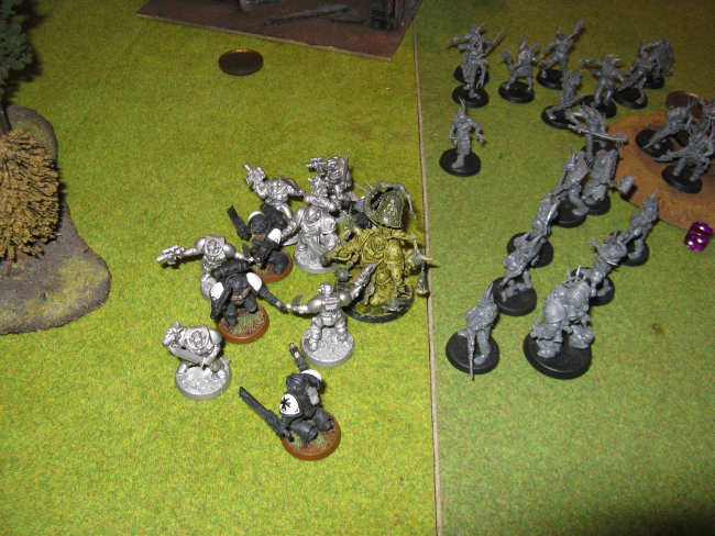 Monsternahkampf mit geringen Ergebnis. Die Ravenguard veror ein paar Modelle und sprang aus den Nahkampf.