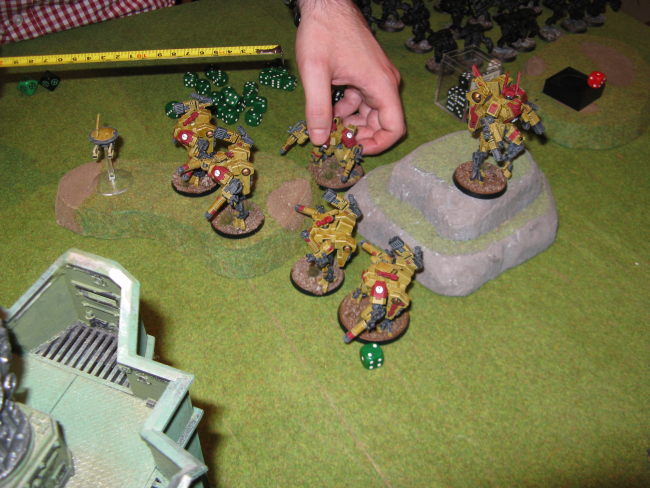 Auf der rechten Seite haben die Tau´s ihre Feuerkaft demonstriert und alles weggeschossen. Nur das Charaktermodell lebte eine Runde weiter.