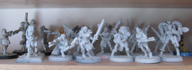 Die bemalten bzw. fast bemalten. Rechts Kopfgeldjäger.